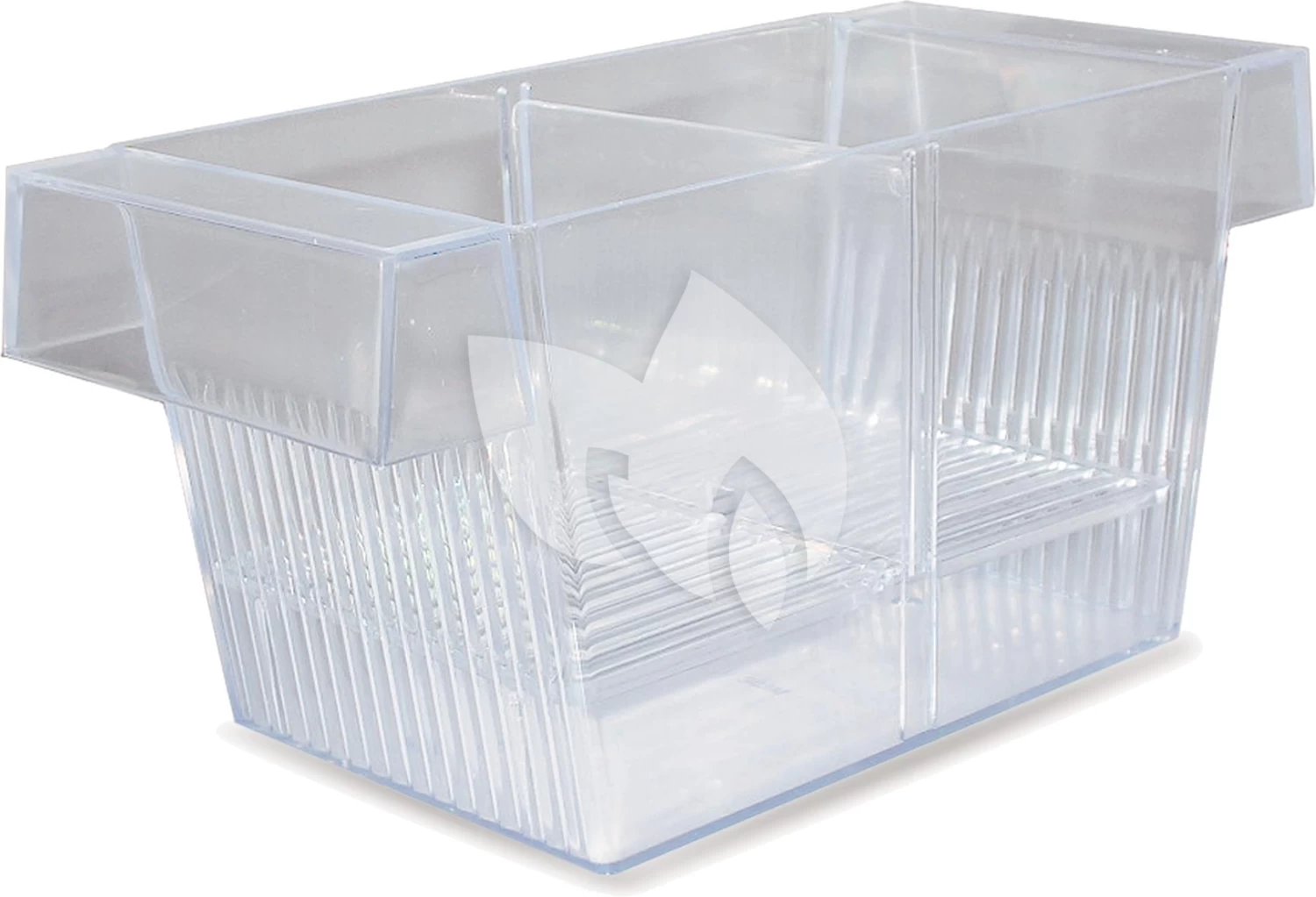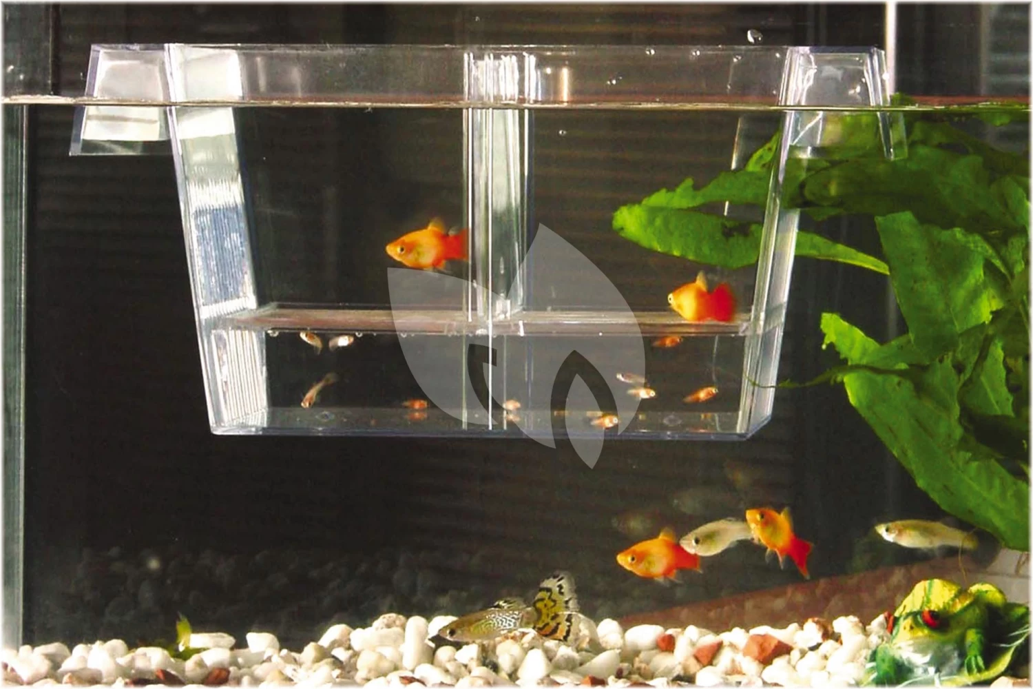 Een drijvend kweekbakje voor guppies. Wanneer er kleine guppies in uw aquarium zijn, dan kunt u ze het beste apart zetten in de guppytank. Zo voorkomt u dat ze worden opgegeten door de andere vissen. De guppytank klikt u simpel aan de rand van uw aquarium vast. Groot model. Inhoud: 1.4 liter.