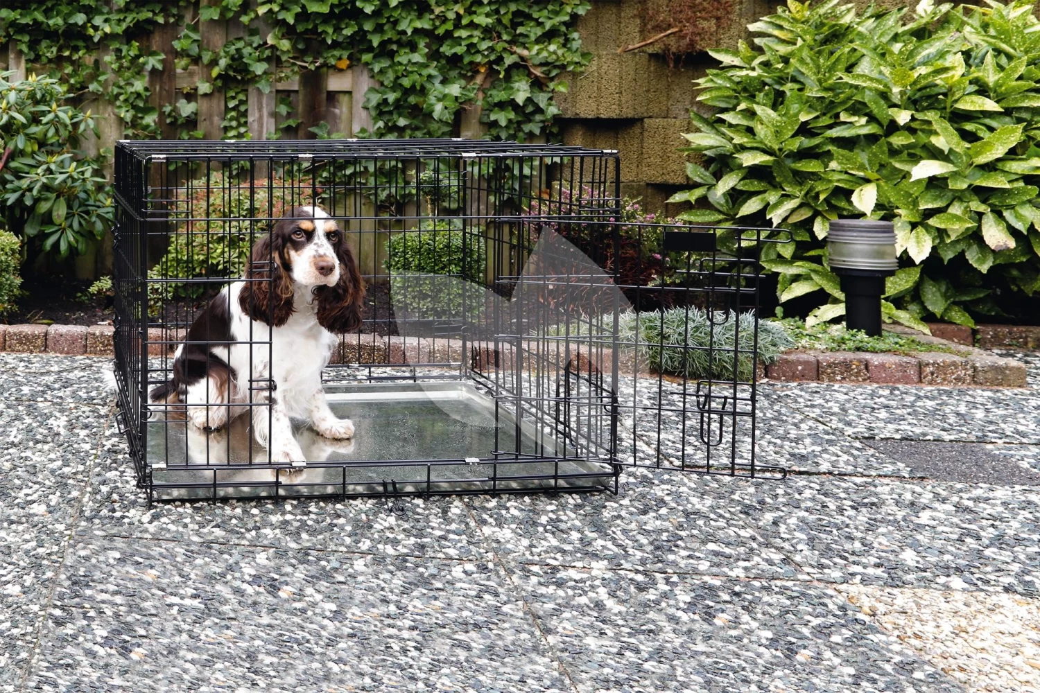 Zwarte bench. 2 deurs. Het ideale hulpmiddel bij verlatingsangst. Geeft uw hond een veilige plek in huis.