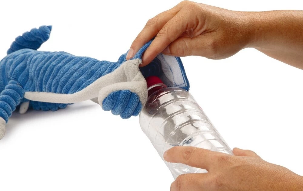 Het Beeztees Flatino olifant Ajan is niet zomaar een flatino hondenspeeltje, maar wel een hele speciale. Net zoals bij de andere flatinos, bevat het lijfje geen vulling. Wat deze flatino zo uniek maakt is, dat de flatino kan worden gevuld met een PET fles van 500 ml. Veel honden zijn dol op het kauwen op een PET fles en nu kan dat op een leuke manier!
