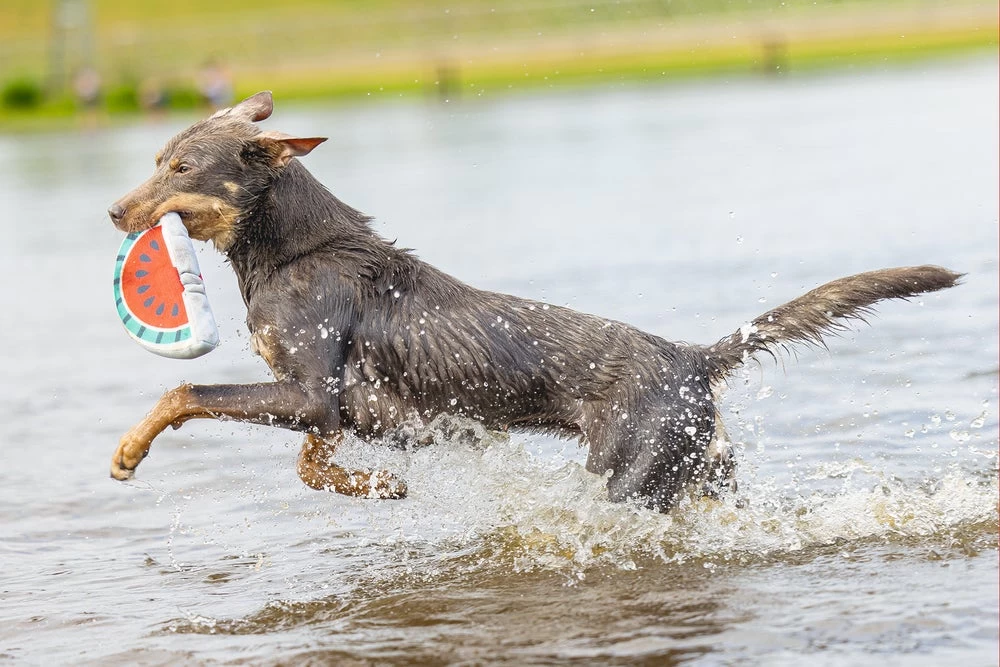 Neem Mello mee naar het strand, een zwemvijver of leg hem in het hondenzwembad en jouw hond zal er uren plezier mee beleven. Uiteraard is het speeltje extra leuk doordat het op een stuk meloen lijkt! Laat de warme dagen maar komen!