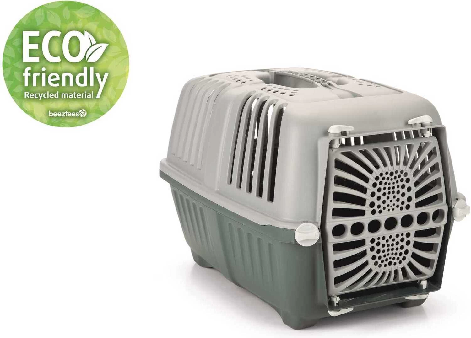 De Beeztees ECO Praktiko Reismand is een mooie reismand voor jouw kleine hond of kat. Deze reismand is van alle gemakken voorzien en is gemakkelijk in elkaar te zetten. De volledige bovenkant van de mand kan eraf worden gehaald, waardoor jouw kat er gemakkelijk in te zetten is en dit maakt het schoonmaken van de reismand ook gemakkelijker. De bovenkant van de reismand is voorzien van een handgreep, zodat de reismand eenvoudig is mee te nemen. De reismand is ECO, omdat er gebruik wordt gemaakt van “tweede leven plastic”. Dit houdt in dat de reismand is gemaakt van gerecycled plastic. Afmetingen: 48 x 31 x 33 cm