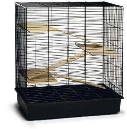 Deze zeer fijn getraliede knaagdierenkooi Scooby is een zeer mooi afgewerkte knaagdierenkooi, voorzien van verschillende houten niveau s. De kooi bevat ook een getraliede bodem, zodat uw knager geen kans ziet om de kunststof onderbak op te peuzelen.