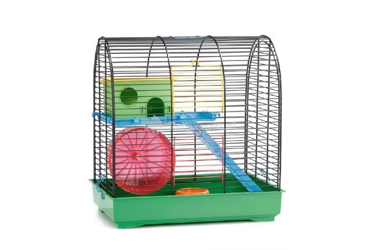 Deze prachtige knaagdierenkooi genaamd Grim 2 Kit City loopt halfrond en krijgt daardoor een speels uiterlijk. Voorzien van een platform met daarop een huisje, welke door de hamster of cavia makkelijk te bereiken is door het meegeleverde trapje. Inclusief een looprad en een drink of voederbakje. Het geheel is voorzien van de nodige vrolijke kleurtjes.