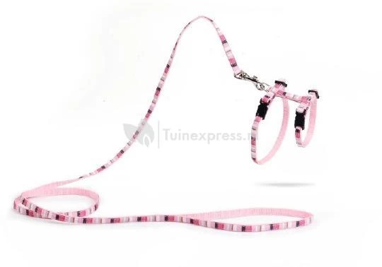 Een fleurig gekleurd nylon verstelbaar kittentuigje. Ideaal als u niet wilt dat uw kitten los loopt. Inclusief een looplijn van 120 cm. Verstelbaar van 15 tot 33 cm. Kleur: roze in combinatie met bruin en wit gestreept.