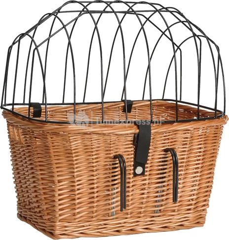 Een rieten fietsmandje met draadkap voor voorop de fiets. Laat uw huisdier lekker meekijken en genieten tijdens de fietsritjes met zijn baasje. De draadkap zorgt ervoor dat uw huisdier niet uit de fietsmand kan springen.
