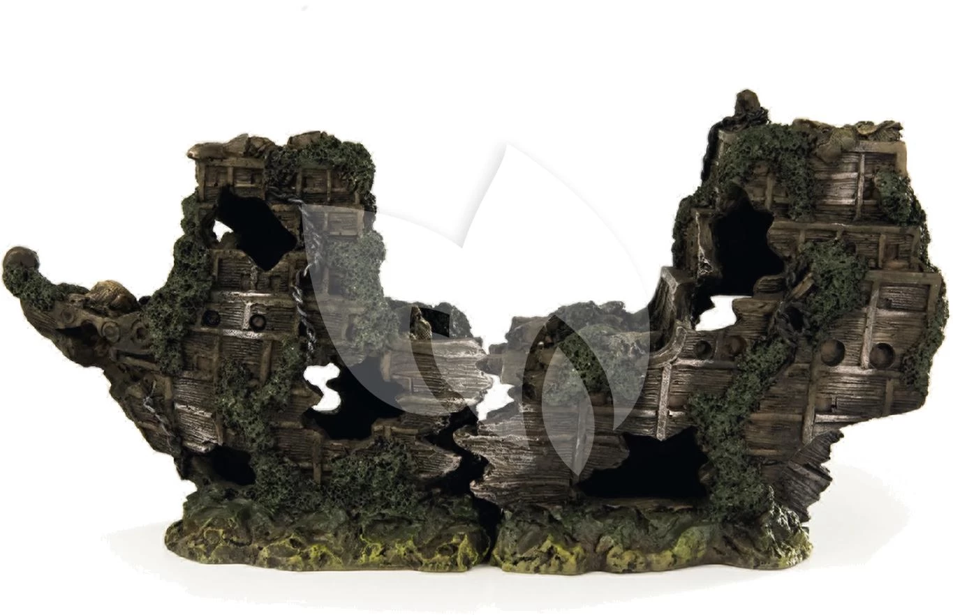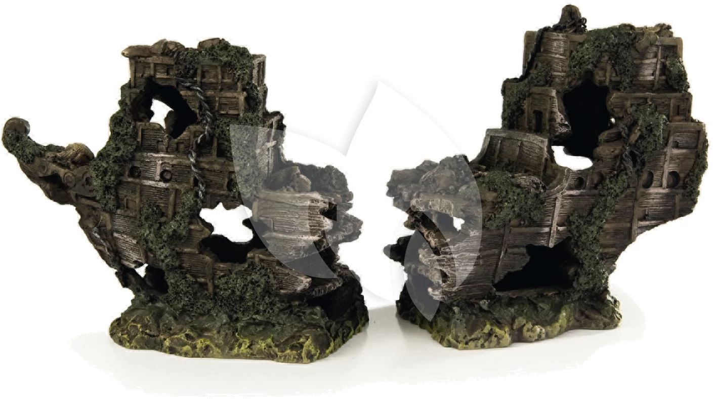 Dit polyresin scheepswrak middel, is een echte aanwinst voor in het aquarium. Bestaande uit twee delen, zodat u ze in elke gewenste stand tegenover elkaar kunt zetten. Niet van echt te onderscheiden.