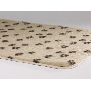 Afgebiesd vetbed met schattige voetprint. Zeer geschikt voor manden, bedden, kooien en andere plekken waar uw hond ligt. Antislip en vochtopnemend. Technische omschrijving: 120 x 75. Wasvoorschriften: Wasbaar op 40 graden.