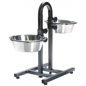 Voederstandaard u met 2 rvs bakken Hondenstandaard inclusief 2 RVS bakken. De bakken zijn onafhankelijk van elkaar te verstellen in hoogte. Ideaal als u een kleine en grote hond heeft. Aan de onderzijde is de standaard voorzien van rubberen doppen te…