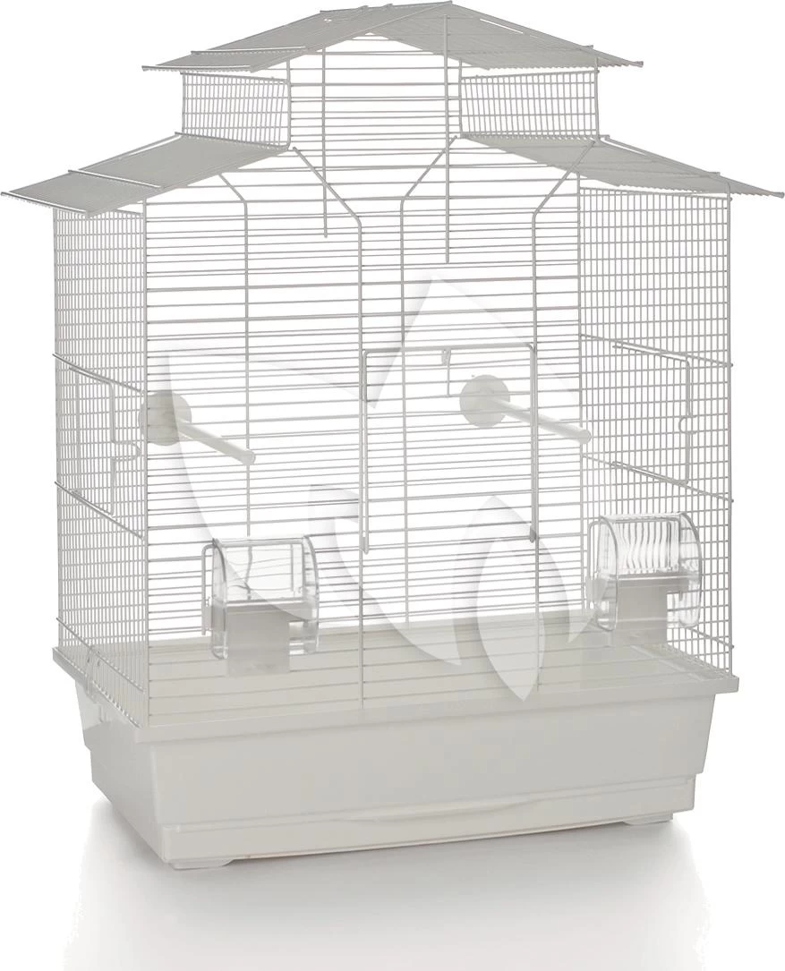 Vogelkooi Iza 2 Pagode is een leuke vormgegeven vogelkooi, welke makkelijk is schoon te maken door de uitschuifbare lade. Inclusief zitstokjes en drink en voederbakjes. Te combineren met de metalen vogelkooistandaard Bob 2. Kleur: wit.