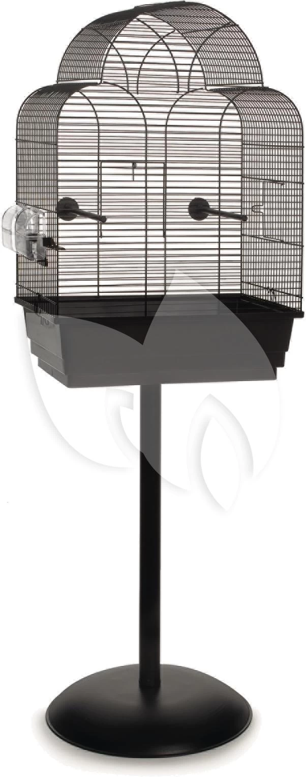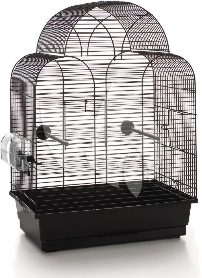 Vogelkooi Sonia is een leuke vormgegeven vogelkooi, welke makkelijk is schoon te maken door de uitschuifbare lade. Inclusief zitstokjes en drink en voederbakjes. Te combineren met de metalen vogelkooistandaard Bob 2. Kleur: zwart.
